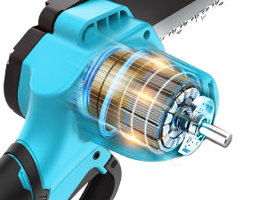 Featuring an upgraded copper motor, the RLSOO mini cordless chainsaw provides longer runtime, enhanced torque, and more power. This increases efficiency, reduces wear, and extends the chainsaw’s life. The high-quality manganese steel chain has undergone deep quenching, ensuring smooth and effective cutting.