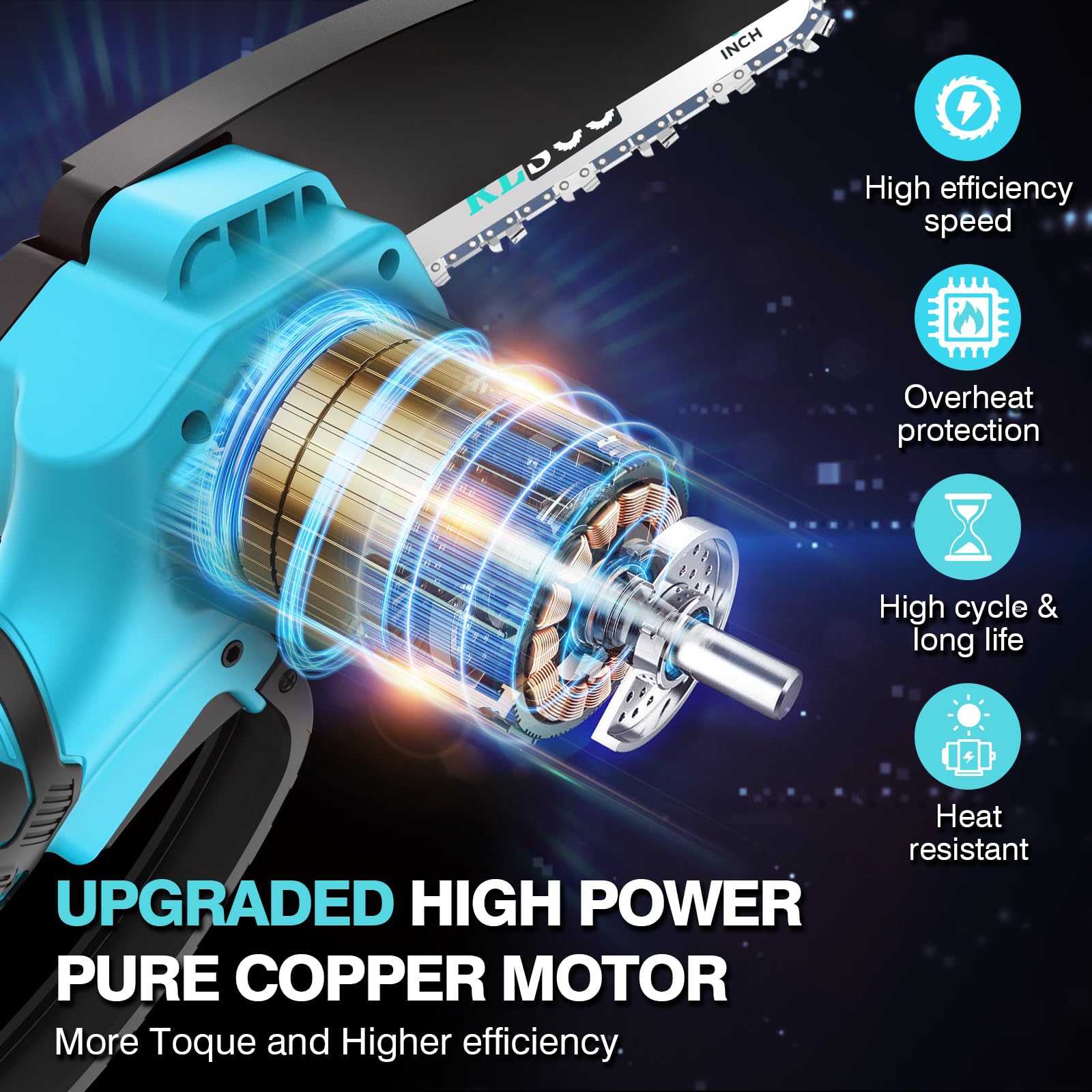 Mini Chainsaw, 6-Inch Cordless Electric Chainsaw, 2024 Upgraded Portable Handheld Chainsaw for Wood Cutting, Tree Trimming, Yard, Home, and Garden (Includes 2 Batteries and 3 Chains)
