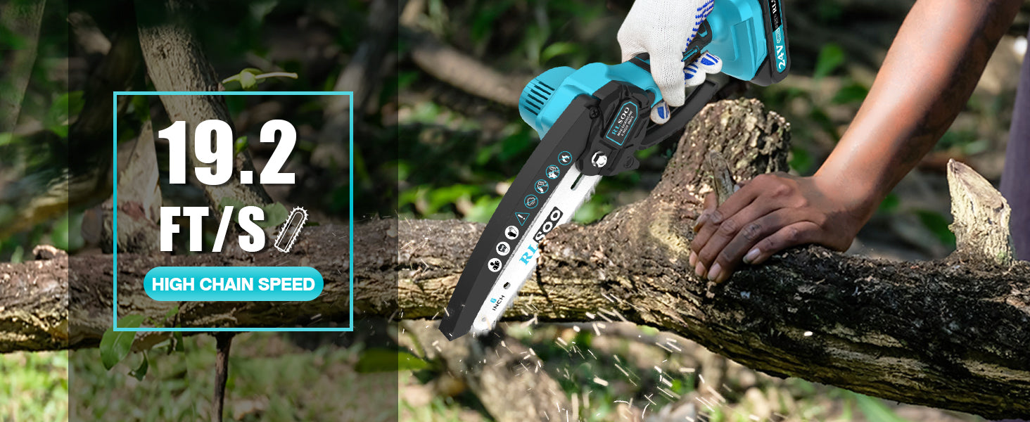 The RLSOO mini chainsaw cuts through logs up to 6 inches in diameter in just about 6 seconds (actual time may vary depending on wood size and hardness). This efficient chainsaw handles thicker trees with ease, making it perfect for diverse cutting needs.