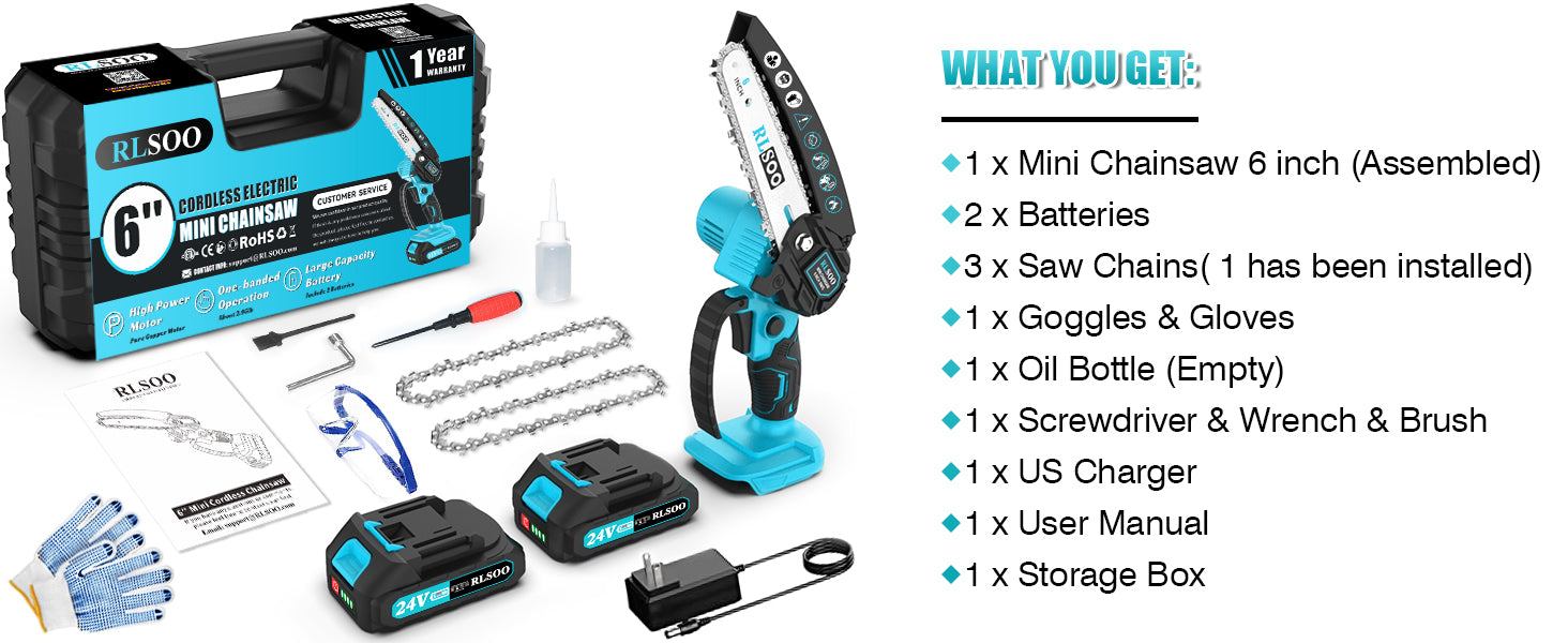 - 2024 Upgraded RLSOO 6-Inch Cordless Mini Chainsaw: Highlight the latest upgrade and the brand.