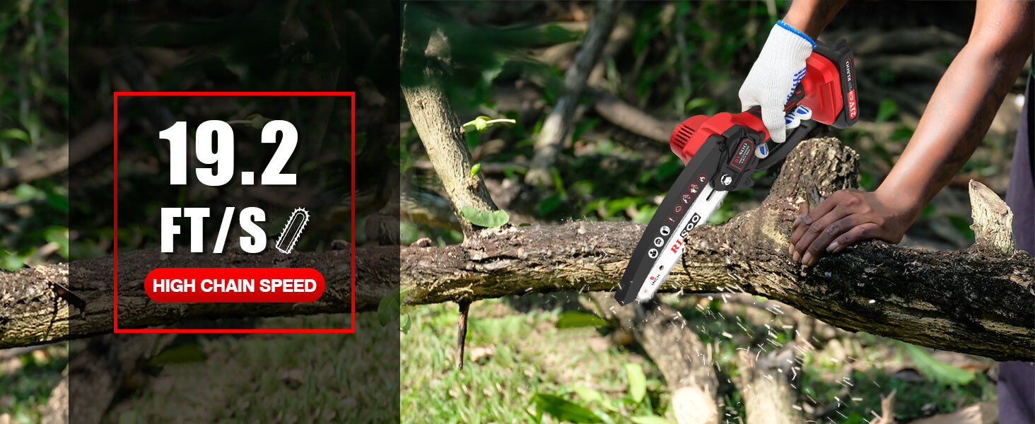 HIGHLY EFFICIENT CUTTING: The RLSOO mini chainsaw can cut through a 6-inch log in approximately 6 seconds (depending on wood size and hardness). It's perfect for cutting thicker trees, meeting a variety of cutting needs.