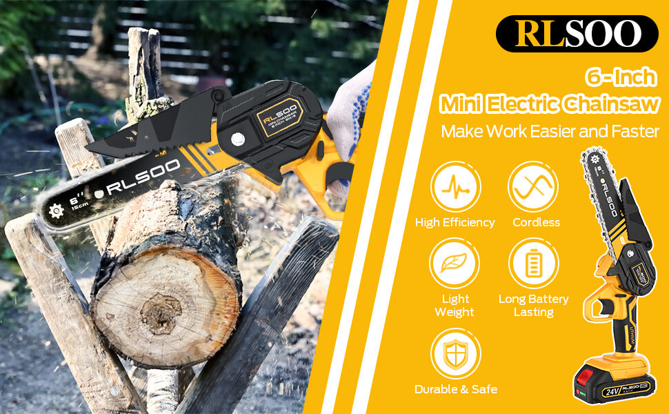 RLSOO 6-Inch Cordless Mini Chainsaw - High-Power, Portable, Lightweight, Ideal for Wood Cutting & Tree Pruning YELLOW